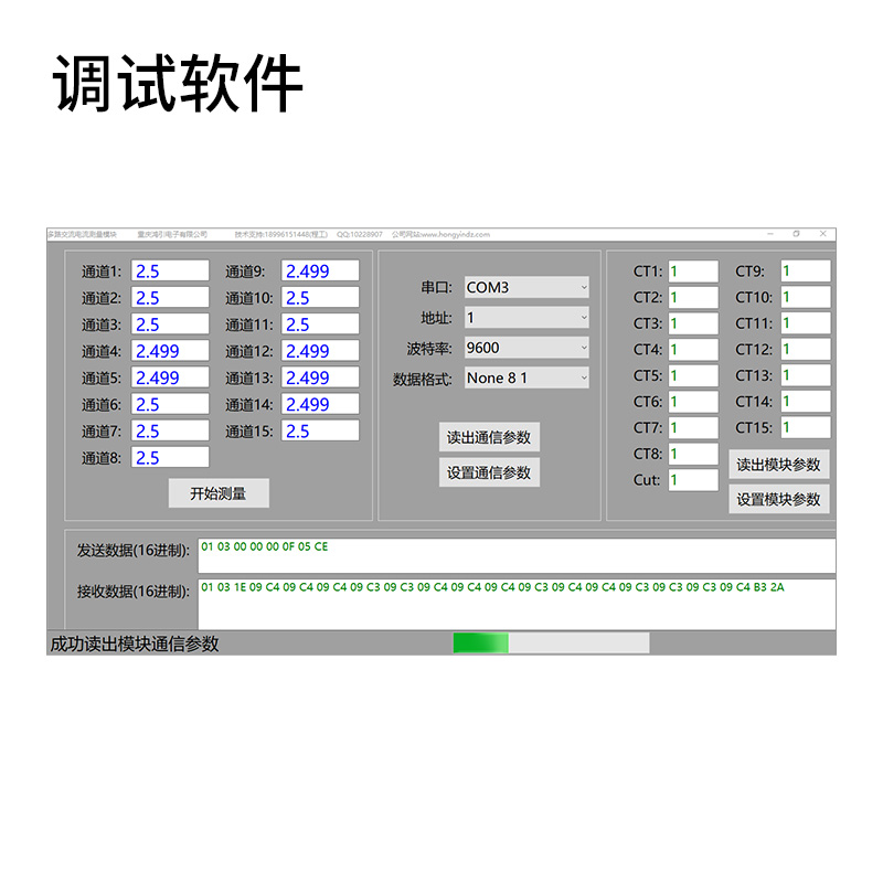 儀表地址,波特率,數據格式通信電流模塊上位機軟件設置或出廠前按用戶要求設置好參數。電流采集模塊上位機軟件也可作為調試軟件,可以讀出15個電流通道的電流值。